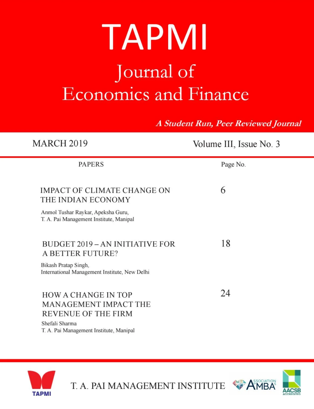 India is also highly vulnerable to such global headwinds. Hence, in this third issue of the third volume of TAPMI Journal of Economics & Finance, we have tried to delve deeper into the impact of climate change on the Indian economy. While politics and economy are always intertwined, we felt it’s good to explore this. We tried to analyze the consequence of the latest budget presented by the ruling government on upcoming polls. The top management of the companies has an impact on the growth and how their sudden change can affect future growth prospects.